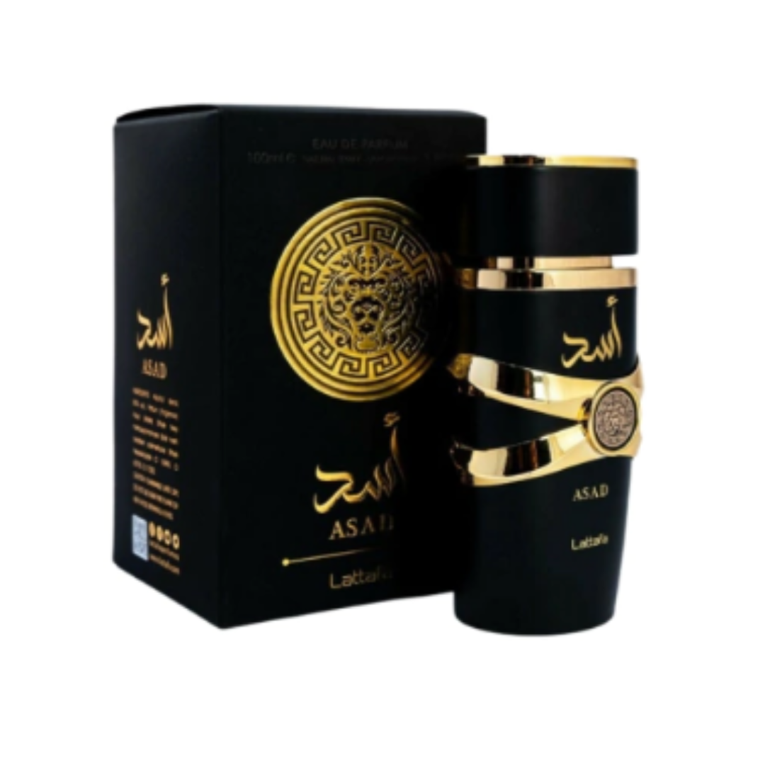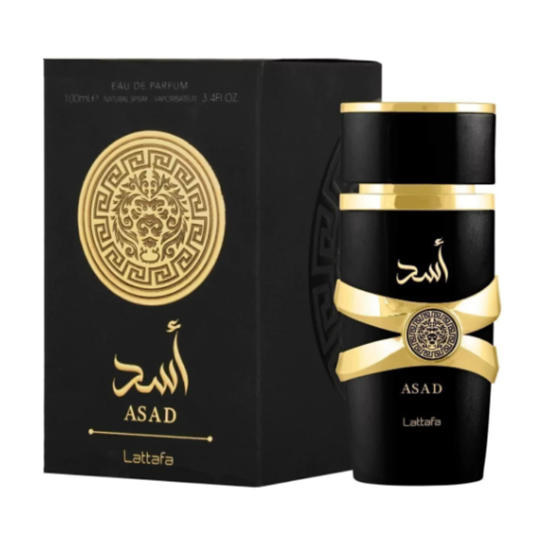Command attention with Lattafa Asad, a rich and potent Eau de Parfum for men. Its name, meaning "Lion" in Arabic, signifies the bold, regal, and powerful nature of this fragrance. Asad opens with a fierce and sophisticated blend of Black Pepper, spicy Clove, and warm Pineapple, creating a striking initial impression. The heart is defined by a dense, seductive mix of creamy Vanilla, comforting Coffee, and a hint of exotic Patchouli. The scent settles into a deep, long-lasting foundation of rich Amber, smoky Dry Woods, and luxurious Benzoin. This powerful combination makes Asad the perfect signature scent for cooler evenings or special occasions when you want unmatched projection and a lingering trail of spicy, smoky luxury.