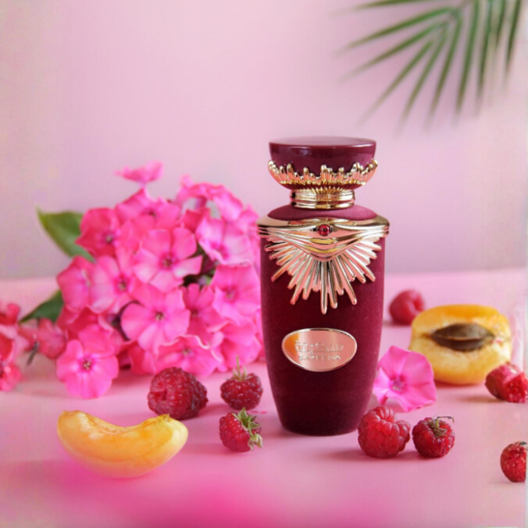 Unleash your passion with Lattafa Emaan Red, a vibrant and intense Eau de Parfum for women. This fragrance is a powerful celebration of rich, warm, and inviting notes, perfectly captured by its striking red bottle. It opens with a burst of lush, juicy Red Berries and a touch of sparkling Pink Pepper, offering an immediately enticing and warm introduction. The heart deepens with a rich floral bouquet, featuring intense Rose and seductive Jasmine, giving the scent a luxurious, velvety core. The long-lasting dry down is sensual and deep, built on a foundation of warm Amber, creamy Vanilla, and exotic Oud, which provides a rich, oriental anchor. Emaan Red is the perfect choice for evening wear, cooler seasons, and moments when you want a fragrance that is bold, romantic, and unforgettable.