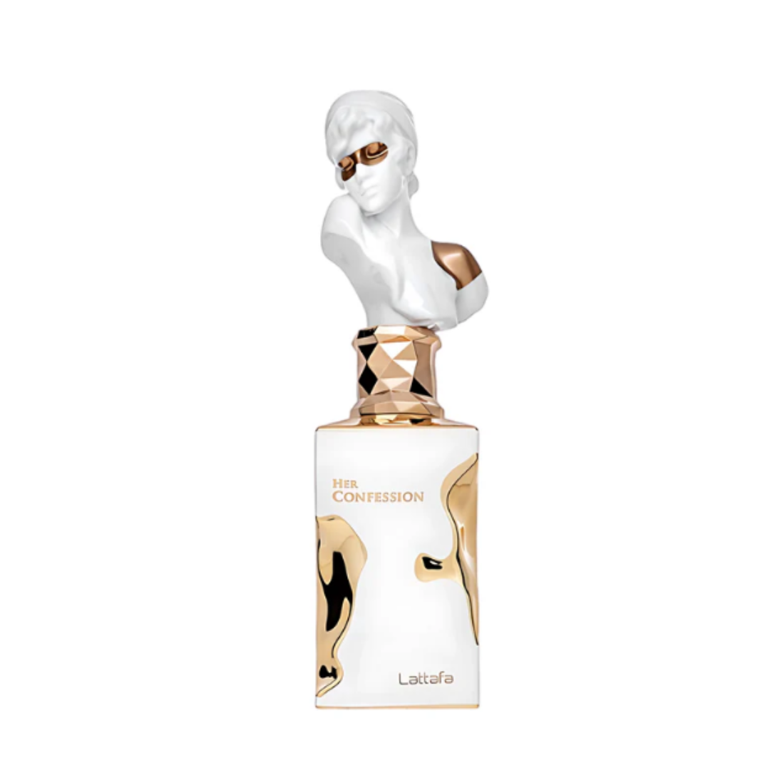 Unveil your deepest desires with Lattafa Her Confession, an exquisitely crafted Eau de Parfum for women. Encased in a breathtaking bottle adorned with a Grecian-inspired bust, this fragrance is a testament to timeless beauty and elegance. The scent itself is a delicate yet powerful symphony, designed to capture the essence of femininity and grace. It opens with a sophisticated blend of luminous florals and soft, inviting notes, leading to a heart where romantic accords intertwine, evoking an aura of profound confidence and allure. The base settles into a warm and comforting embrace of musk and subtle woods, leaving a captivating and unforgettable trail. "Her Confession" is more than a perfume; it's an intimate statement, perfect for the woman who cherishes her inner strength and refined sensuality.